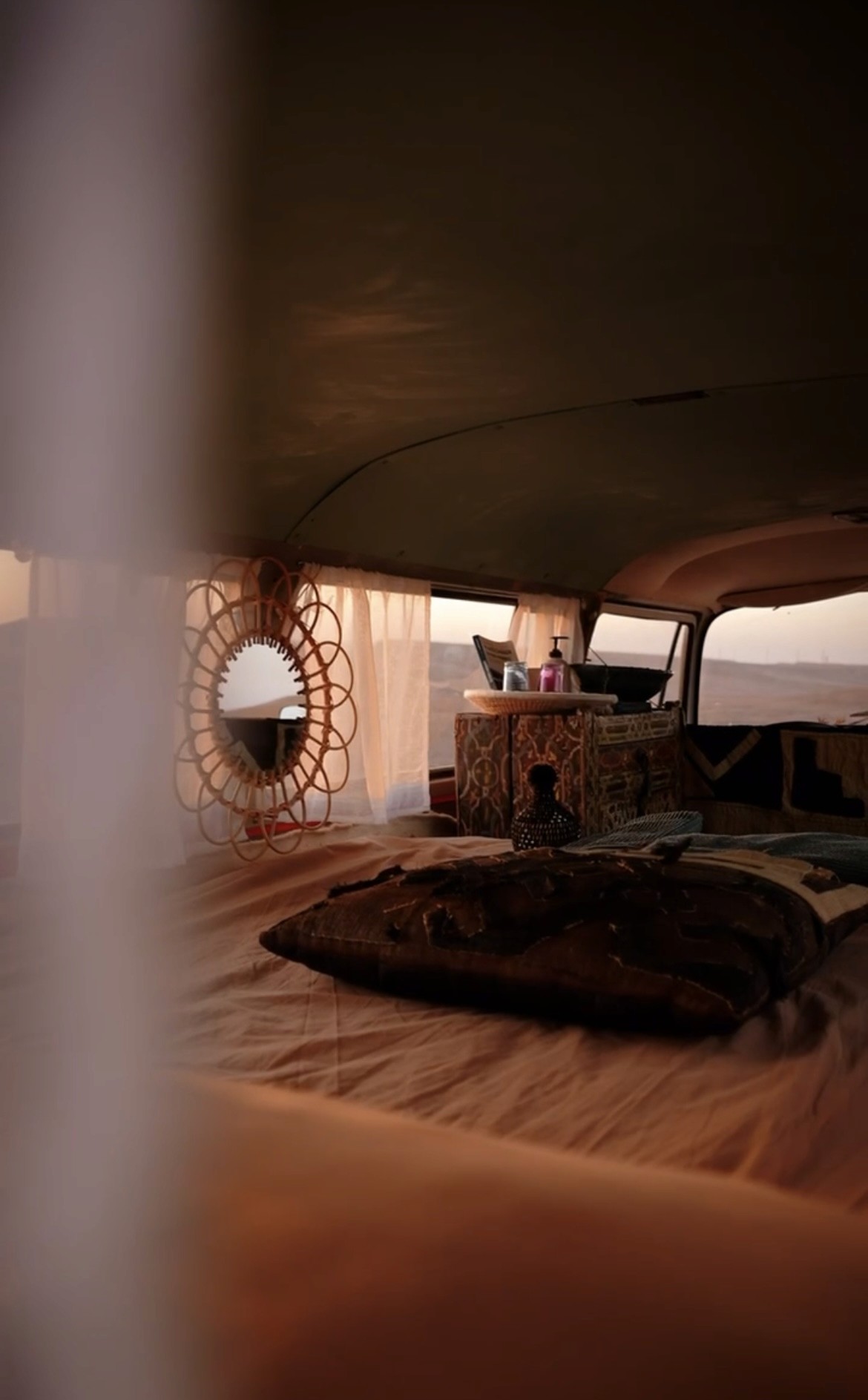 Vintage VW van (1976), boho & beldi. ⵣ Private spot in nature with dromedaries nearby. ⵣ Solar power, outdoor shower, ⵣ Optional meals : lunch / dinner. ⵣ Breakfast included. Your private office in front of the desert with a swimming pool.